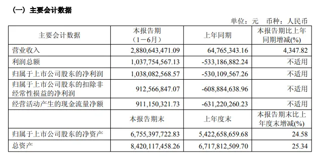 8月26日晚,寒武纪-U(688256)发布2025年半年度报告。数据显示,2025年上半年,公司实现营业收入28.81亿元,较上年同期增加28.16亿元,同比增长4347.82%;归属于上市公司股东的净利润为10.38亿元,归属上市公司股东的扣除非经常性损益的净利润为9.13亿元,均实现扭亏为盈。
