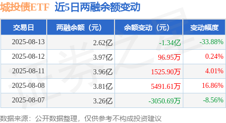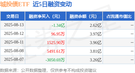 本站消息,8月13日,城投债ETF(511220)融资买入1923.5万元,融资偿还1.54亿元,融资净卖出1.34亿元,融资余额2.62亿元,近20个交易日中有13个交易日出现融资净买入。
